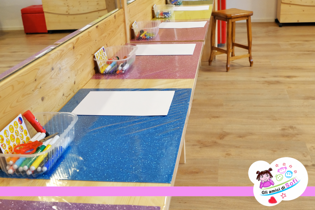 • È possibile chiedere l’allestimento con le postazioni di lavoro per i bimbi con kit creativo per disegni e piccoli lavoretti